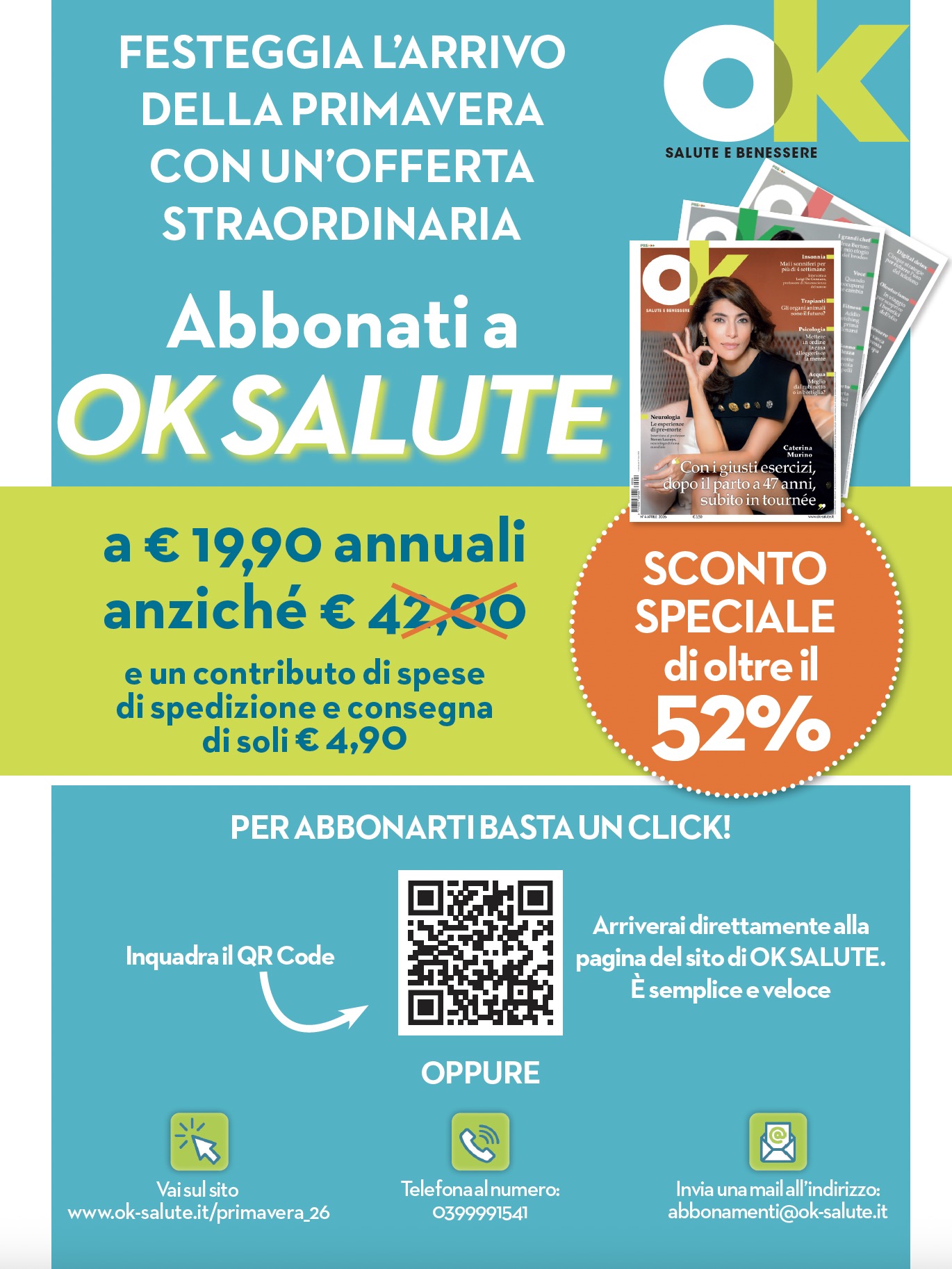 OK Salute e Benessere è il mensile che fornisce informazioni affidabili, accurate e aggiornate per perseguire e favorire il benessere ed equilibro psico fisico della persona.